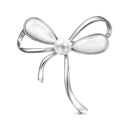 Брошь из серебра 925 пробы с перламутром, жемчугами и фианитами