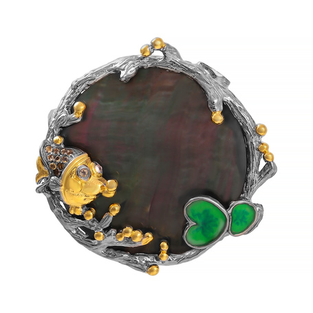 Брошь из серебра 925 пробы с кварцем, перламутром и эмалью