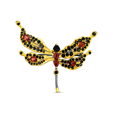Брошь из серебра 925 пробы с шпинелью, гранатами и эмалью