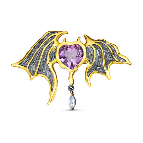 Брошь-подвеска из серебра 925 пробы с аметистами и перидотами