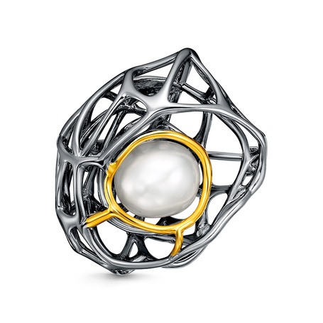 Брошь из серебра 925 пробы с жемчугами и фианитами