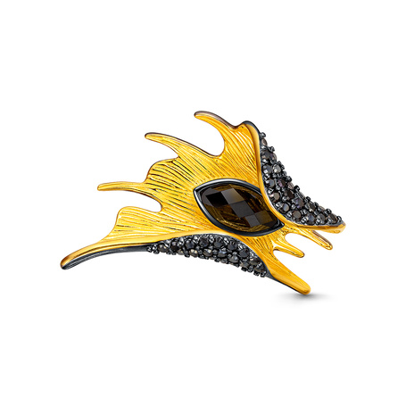 Брошь из серебра 925 пробы с фианитами и ониксом