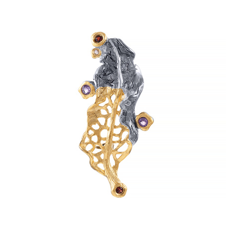 Брошь-подвеска из серебра 925 пробы с аметистами, гранатами и цитринами