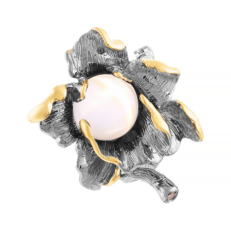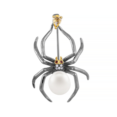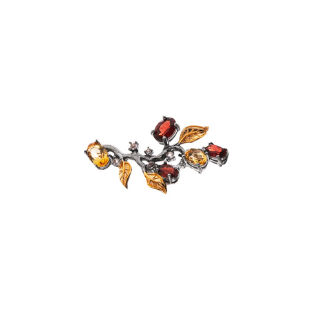 Брошь из серебра 925 пробы с цитринами, гранатами, топазами и жемчугами