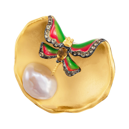Брошь-подвеска из серебра 925 пробы с цитринами, перидотами и барочным жемчугом