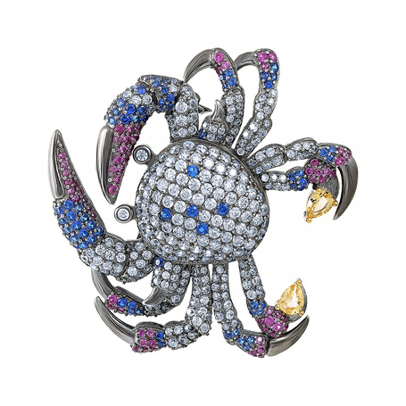 Брошь из серебра 925 пробы с цитринами, аметистами, перидотами и эмалью