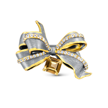 Брошь из серебра 925 пробы с фианитами и цитринами