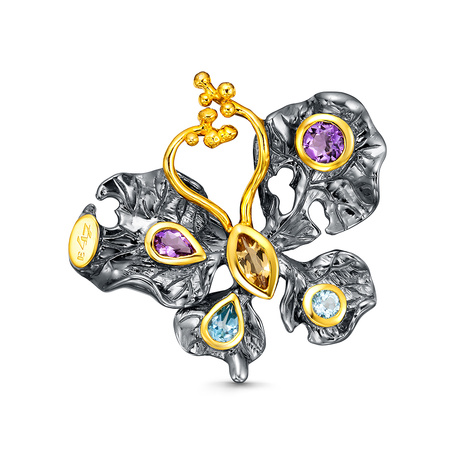Брошь-подвеска из серебра 925 пробы с цитринами, топазами и аметистами