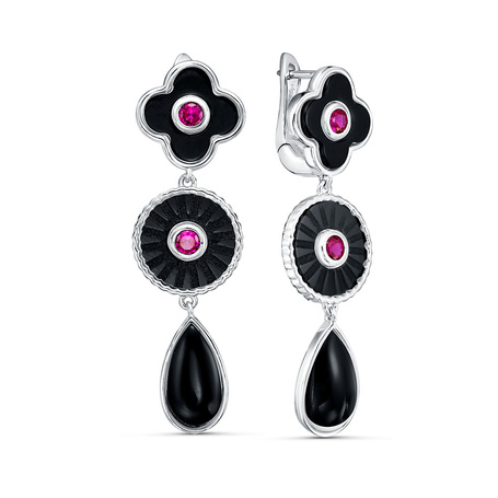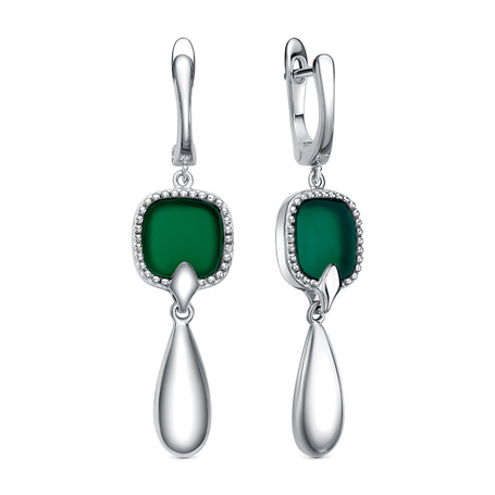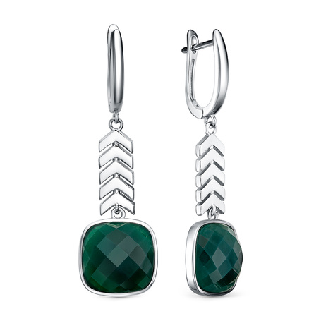 Серьги из серебра 925 пробы с шпинелью синтетической и агатом