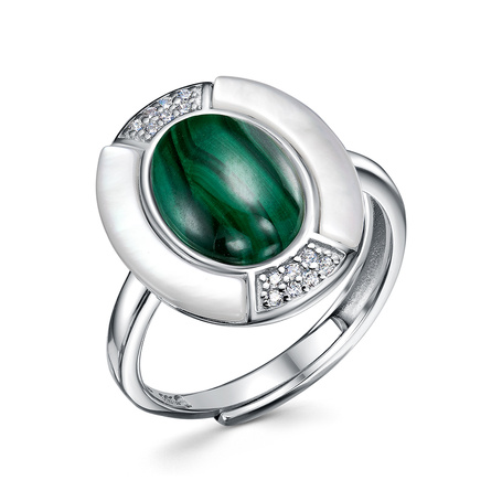 Кольцо из серебра 925 пробы с фианитами, малахитами и перламутром