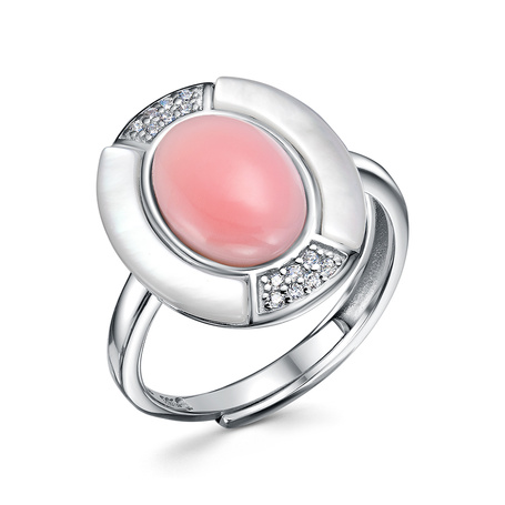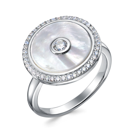 Кольцо из серебра 925 пробы с фианитами и перламутром
