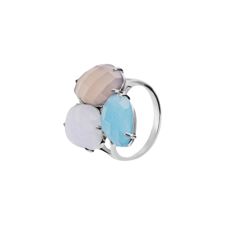 Кольцо из серебра 925 пробы с агатом и аквамаринами