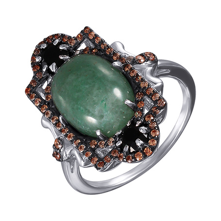 Кольцо из серебра 925 пробы с авантюринами и фианитами