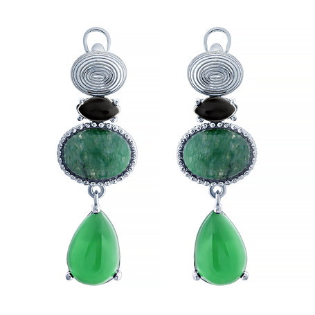 Серьги из серебра 925 пробы с агатом, авантюринами и ониксом