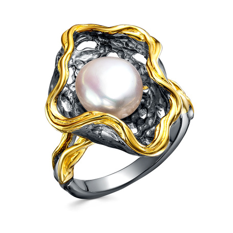 Кольцо из серебра 925 пробы с барочным жемчугом