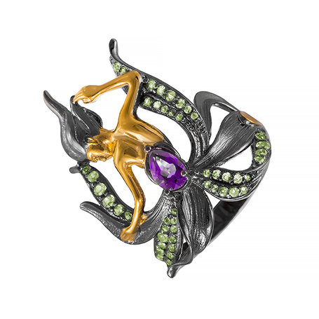 Кольцо из серебра 925 пробы с аметистами и перидотами