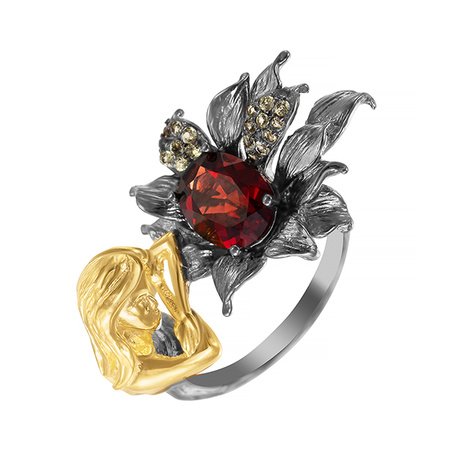 Кольцо из серебра 925 пробы с гранатами и перидотами