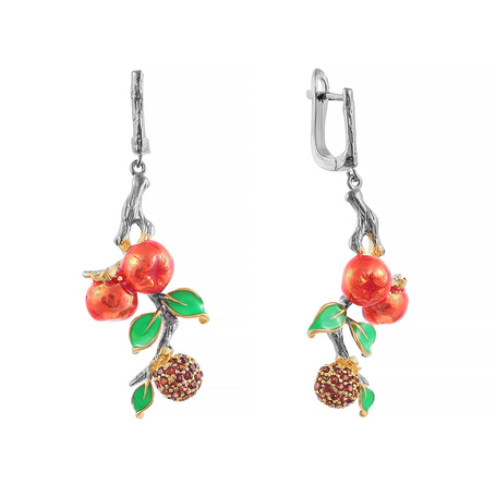 Серьги из серебра 925 пробы с гранатами и эмалью