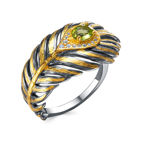 Кольцо из серебра 925 пробы с перидотами, раухтопазами и эмалью