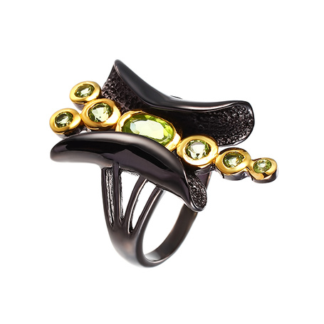 Кольцо из серебра 925 пробы с перидотами и раухтопазами