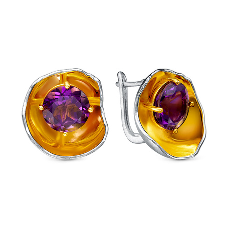 Серьги из серебра 925 пробы с аметистами и топазами