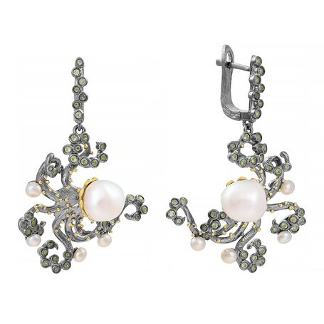Серьги из серебра 925 пробы с перидотами, жемчугами и барочным жемчугом