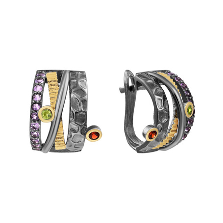 Серьги из серебра 925 пробы с аметистами, гранатами и перидотами