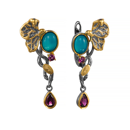 Серьги из серебра 925 пробы с агатом и турмалинами