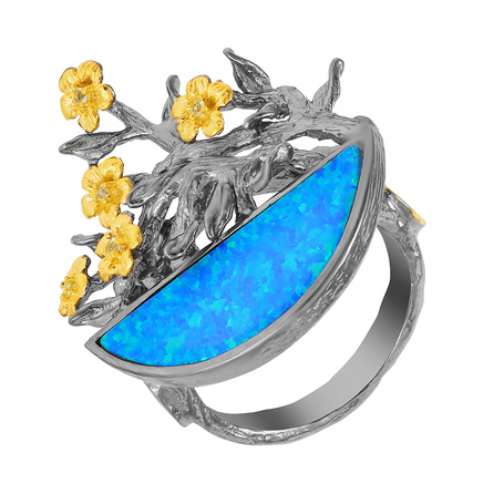 Кольцо из серебра 925 пробы с опалами синтетическими
