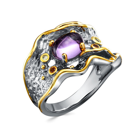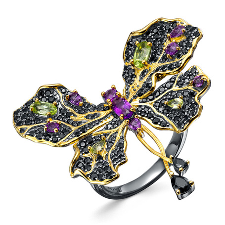 Кольцо из серебра 925 пробы с шпинелью, перидотами и аметистами