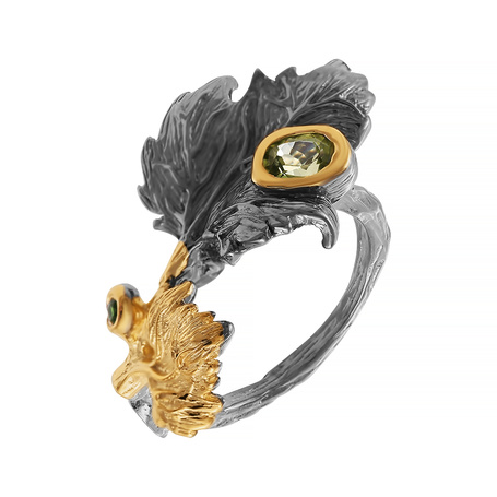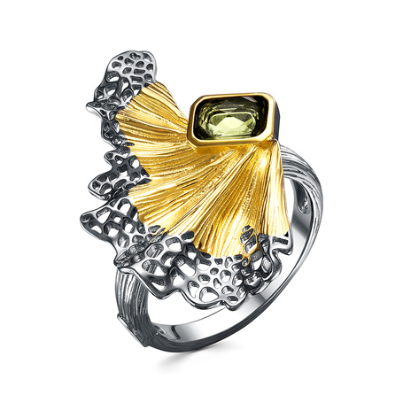 Кольцо из серебра 925 пробы с перидотами, раухтопазами и эмалью