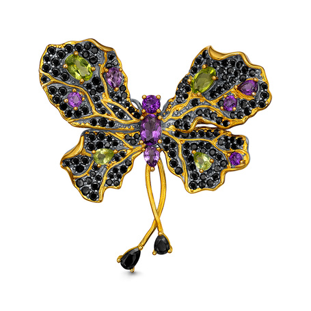 Брошь-подвеска из серебра 925 пробы с шпинелью, перидотами и аметистами