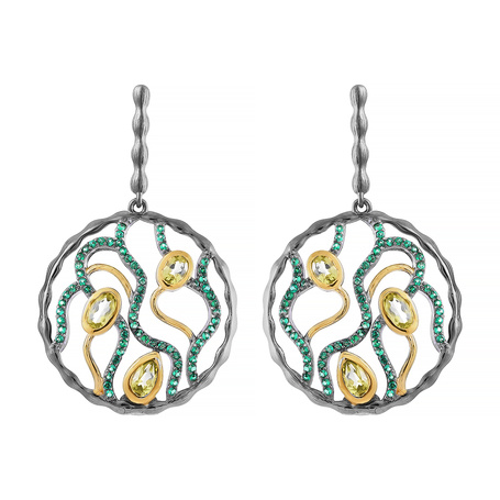Серьги из серебра 925 пробы с перидотами, цитринами, раухтопазами и эмалью