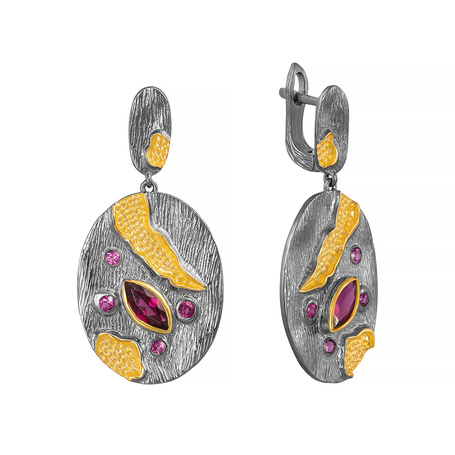 Серьги из серебра 925 пробы с аметистами и родолитами