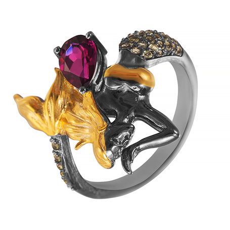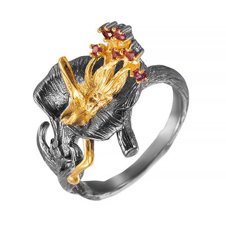 Кольцо из серебра 925 пробы с родолитами и топазами