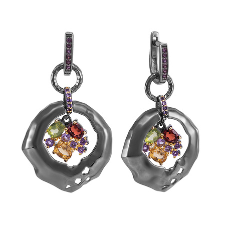 Серьги из серебра 925 пробы с перидотами, аметистами, гранатами и цитринами