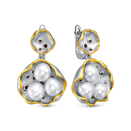 Серьги из серебра 925 пробы с гранатами и барочным жемчугом