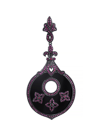 Подвеска из серебра 925 пробы с ониксом и рубинами синтетическими