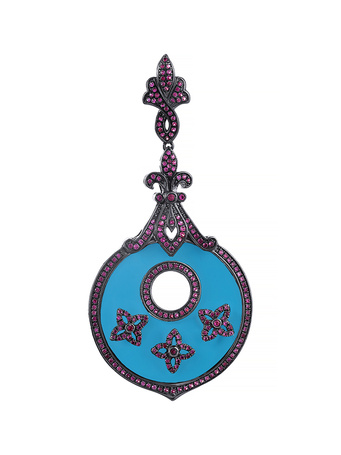 Подвеска из серебра 925 пробы с бирюзой синтетической и рубинами синтетическими