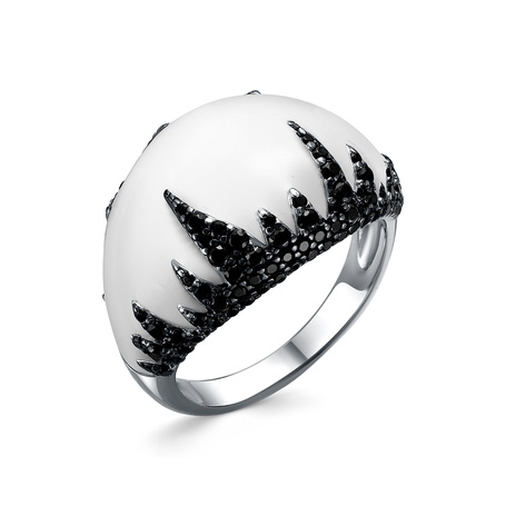 Кольцо из серебра 925 пробы с фианитами и ониксом