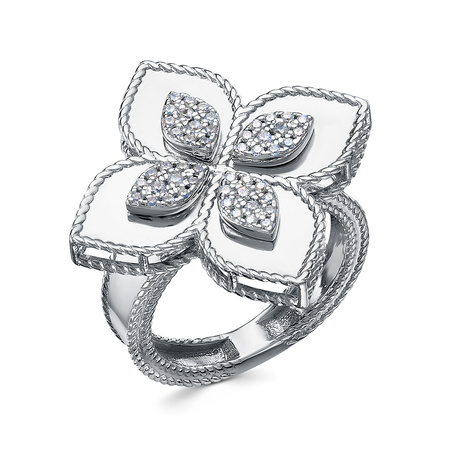 Кольцо из серебра 925 пробы с перламутром, эмалью и фианитами