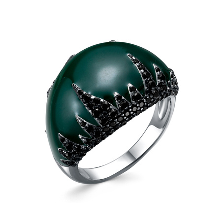 Кольцо из серебра 925 пробы с агатом, фианитами и эмалью