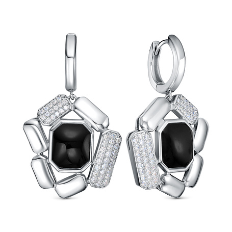 Серьги из серебра 925 пробы с ониксом и фианитами