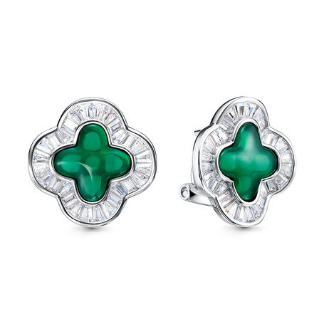 Серьги из серебра 925 пробы с агатом, эмалью и фианитами