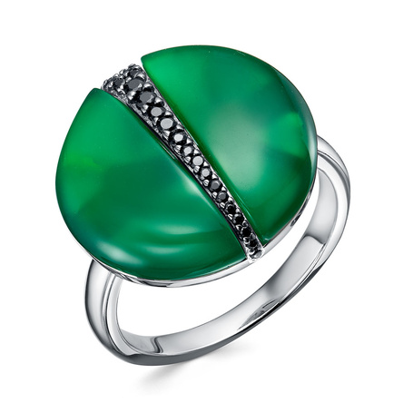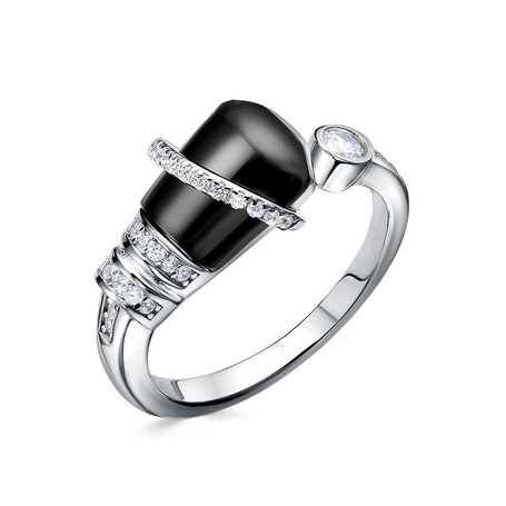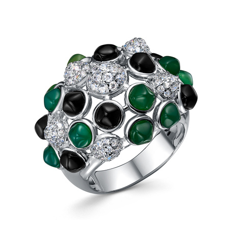 Кольцо из серебра 925 пробы с фианитами, ониксом и агатом