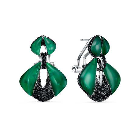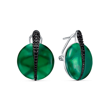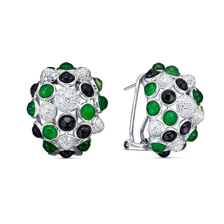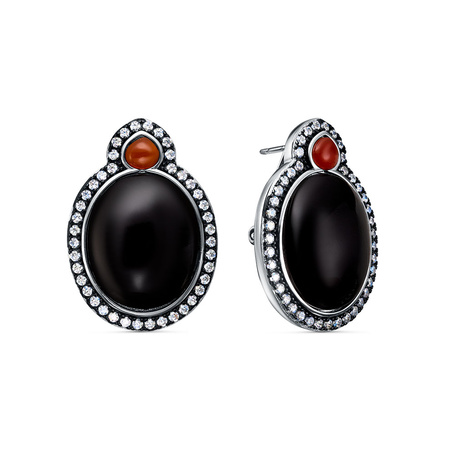 Серьги из серебра 925 пробы с фианитами, агатом и ониксом