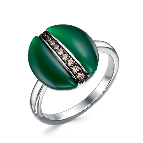 Кольцо из серебра 925 пробы с фианитами и агатом