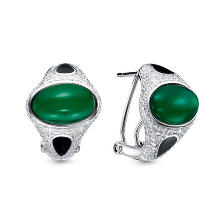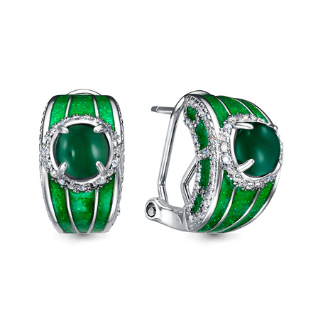 Серьги из серебра 925 пробы с агатом, эмалью и фианитами