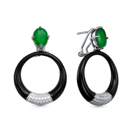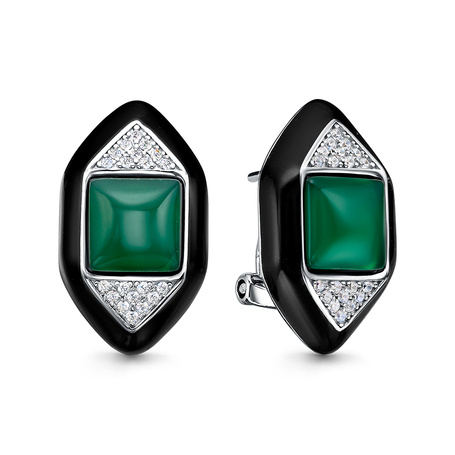 Серьги из серебра 925 пробы с фианитами, ониксом и эмалью