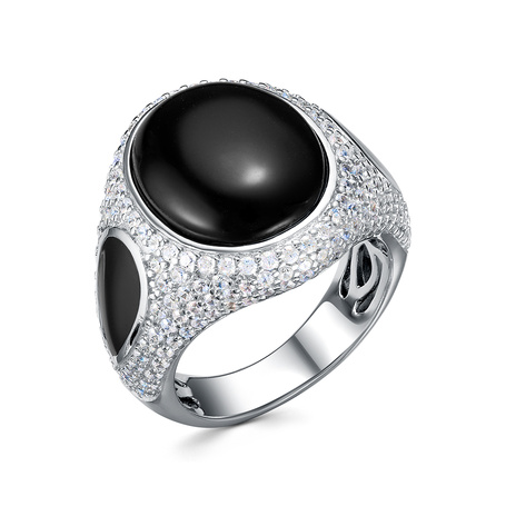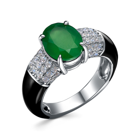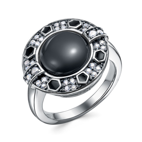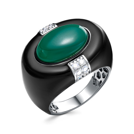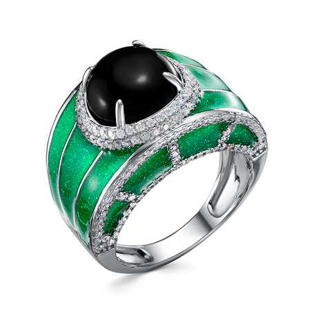 Кольцо из серебра 925 пробы с фианитами, ониксом и эмалью